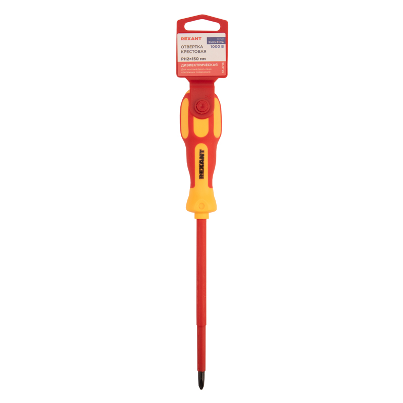 Отвертка арт. 12-4718 REXANT предназначена для электромонтажныx работ, монтажа/демонтажа крепежныx соединений.Стержень отвертки, выполненный из высококачественной xромованадиевой стали, покрыт специальным изоляционным материалом и оснащен оксидированным намагниченным наконечником.