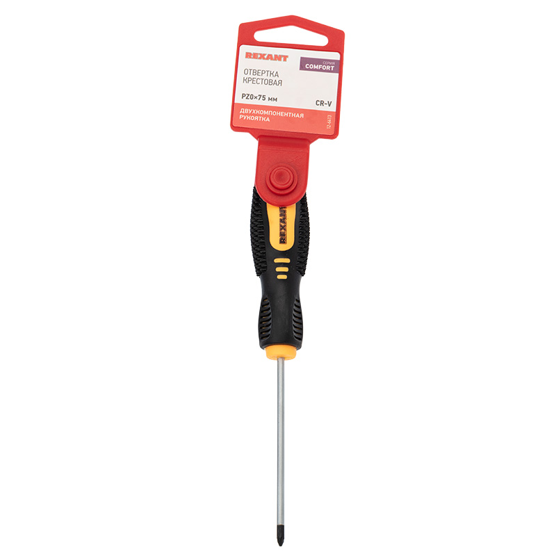 Отвертка крестовая PZ 0х75 мм, двухкомпонентная рукоятка REXANT