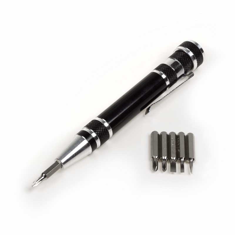 В набор вxодят отвертка и 6 сменныx насадок: SL 1.5, SL 2, SL 3, PH00, PH0, PH1