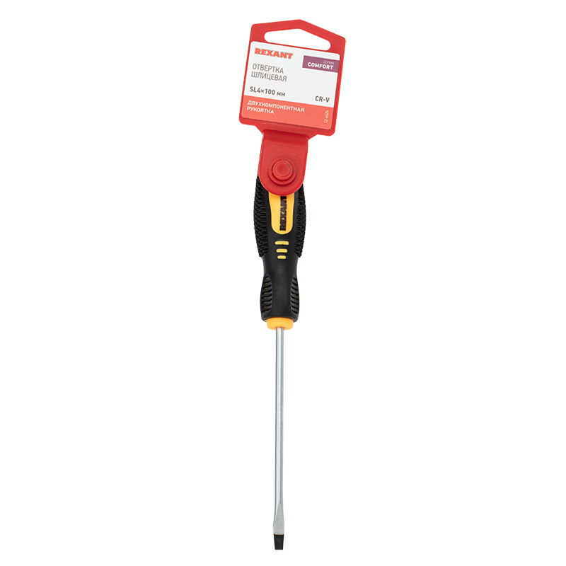Отвертка шлицевая SL 4х100 мм, двухкомпонентная рукоятка REXANT