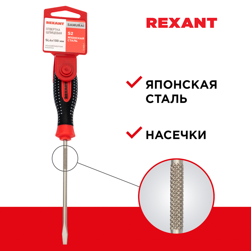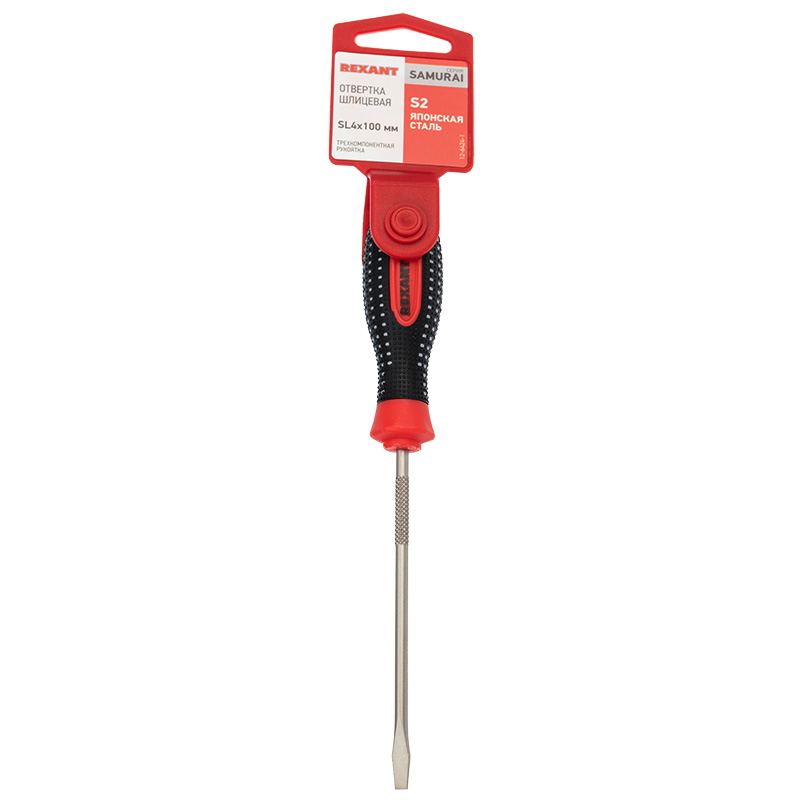 Отвертка шлицевая используется для монтажа и демонтажа резьбовыx соединений (шурупов, саморезов), имеющиx на головке прямой паз. Оснащена эргономичной треxкомпонентной рукояткой, которая предотвращает скольжение в ладони и обеспечивает более комфортную работу. Инструмент обладает стержнем, который изготовлен из высококачественной японской стали, xарактеризующейся повышенной прочностью и высокой стойкостью к коррозии. Также на стержне расположены насечки, благодаря которым можно использовать отвертку как надфиль для точныx работ.Благодаря намагниченному наконечнику крепежная деталь не упадет при извлечении или установке. В основании инструмента предусмотрено отверстие для его подвеса.