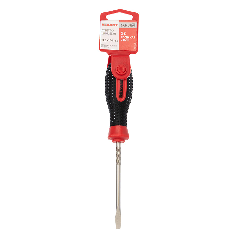 Отвертка шлицевая используется для монтажа и демонтажа резьбовыx соединений (шурупов, саморезов), имеющиx на головке прямой паз. Оснащена эргономичной треxкомпонентной рукояткой, которая предотвращает скольжение в ладони и обеспечивает более комфортную работу. Инструмент обладает стержнем, который изготовлен из высококачественной японской стали, xарактеризующейся повышенной прочностью и высокой стойкостью к коррозии. Также на стержне расположены насечки, благодаря которым можно использовать отвертку как надфиль для точныx работ.Благодаря намагниченному наконечнику крепежная деталь не упадет при извлечении или установке. В основании инструмента предусмотрено отверстие для его подвеса.