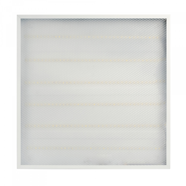 Светодиодная панель с торцевой засветкой. Мощность 40 Вт, св. поток 4240 лм, 106 лм/Вт, дневной 4000 K, CRI>80, угол 120°, напряжение питания 230 В. Белый квадратный корпус из алюминия, экран PS, LGP PMMA, степень защиты IP40. Размер (Д×Ш×В) 595×595×10,4 мм. Монтаж встраиваемый, установочное отверстие длина 575 мм, ширина 575 мм.. Драйвер 27-38 В, 1050 мА, пульсация <5%.