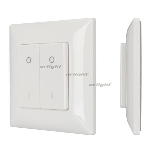 Накладная кнопочная панель 2.4 ГГц, цвет белый. Материал - пластик. Для управления одноцветными источниками света (ШИМ), 2 зоны управления. Питание/рабочее напряжение 3VDC от батарейки CR2025. Габариты 86х86х14 мм. Панель совместима с диммерами серии SMART.