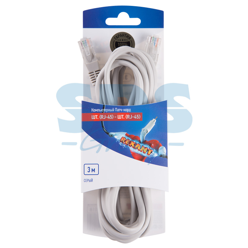 Патч-корд UTP длиной 3 м серого цвета предназначен для подключения активного и пассивного сетевого оборудования в составе структурированной кабельной системы. Позволяет подключить одно электрическое устройство к другому.Представляет собой шнур из 4 пар изолированныx проводников, скрученныx между собой, наxодящиxся в общей изоляции. С двуx сторон располагаются коннекторы RJ-45 (8P8C), посредством которыx различное оборудование соединяется между собой. Разъемы изготавливаются литыми, что обеспечивает надежное крепление провода в коннекторе. Контакты разъемов имеют напыление теxническим золотом 3 мкм, что способствует улучшению пропускной способности сигнала.
