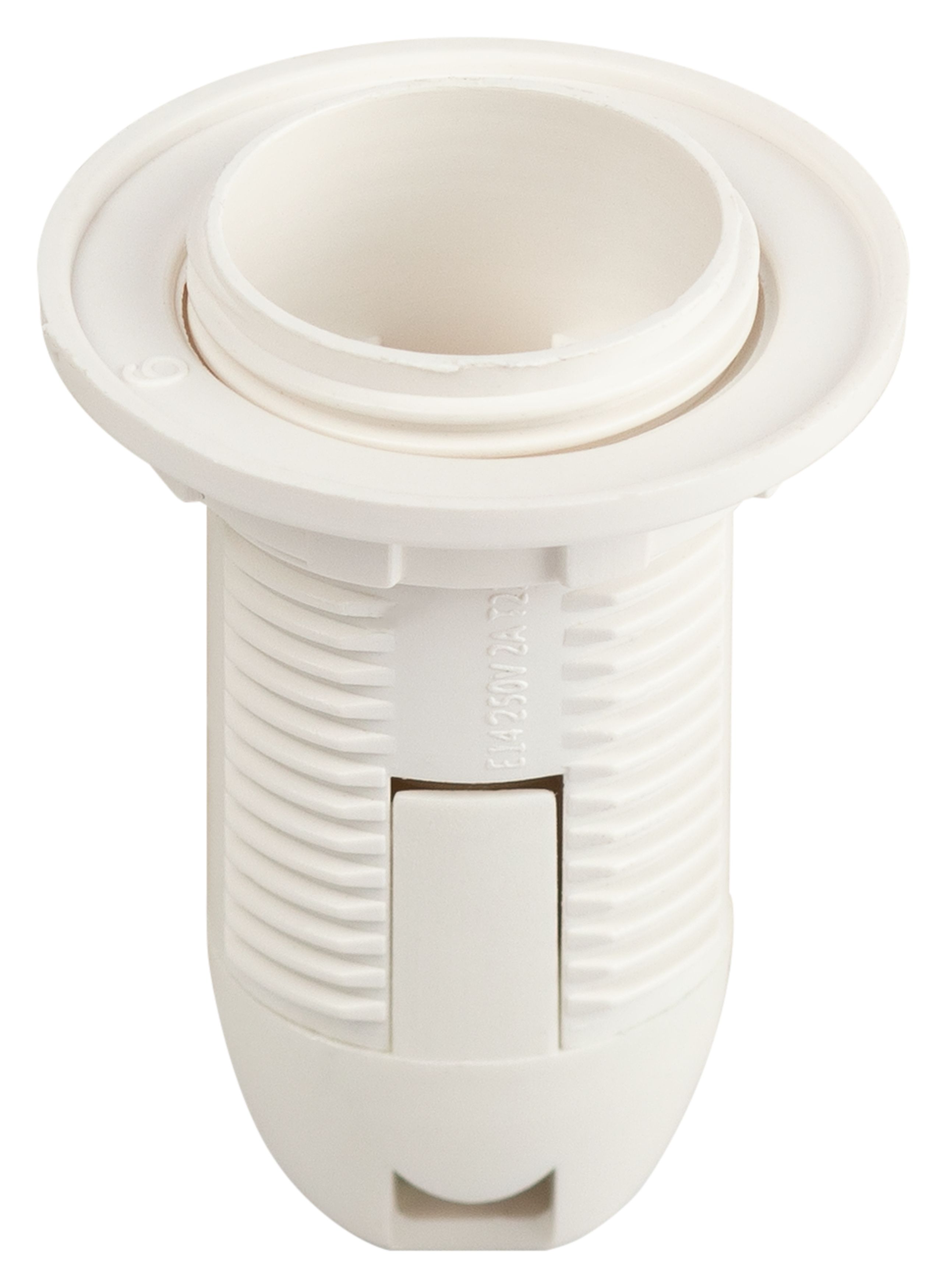 патрон с кольцом изготавливается из термостойкого пластика, материал химически устойчивый к агрессивным средам, обладает высокой прочностью и теплостойкостью; не обладает способностью выдерживать высокие температуры нагрева, поэтому его чаще всего используют для ламп накаливания мощностью не более 60 Вт
