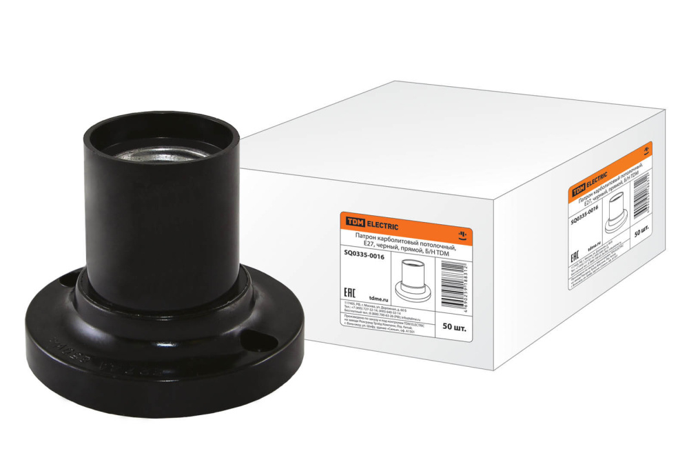 Патрон Е27 карболитовый потолочный прямой черный TDM /50/200