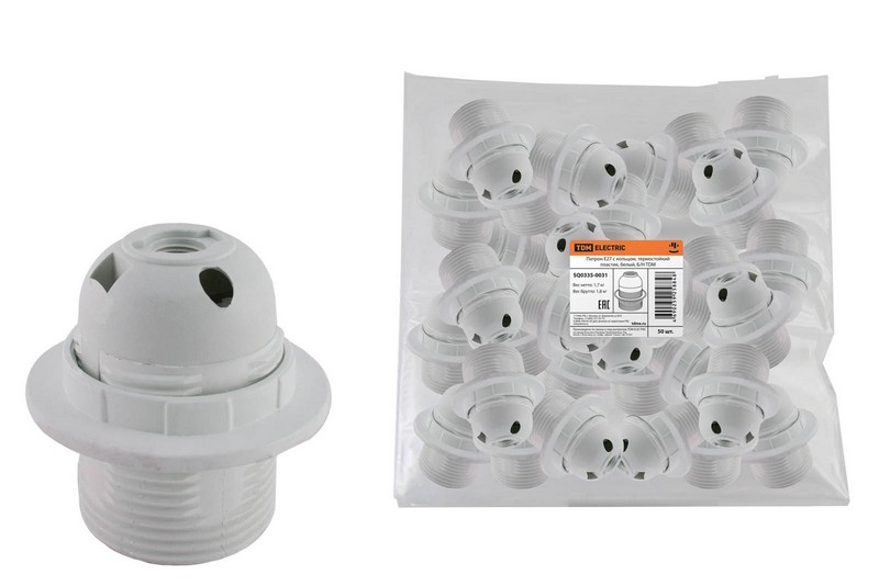 Патрон Е27 пластиковый с кольцом белый б/н TDM /50/200