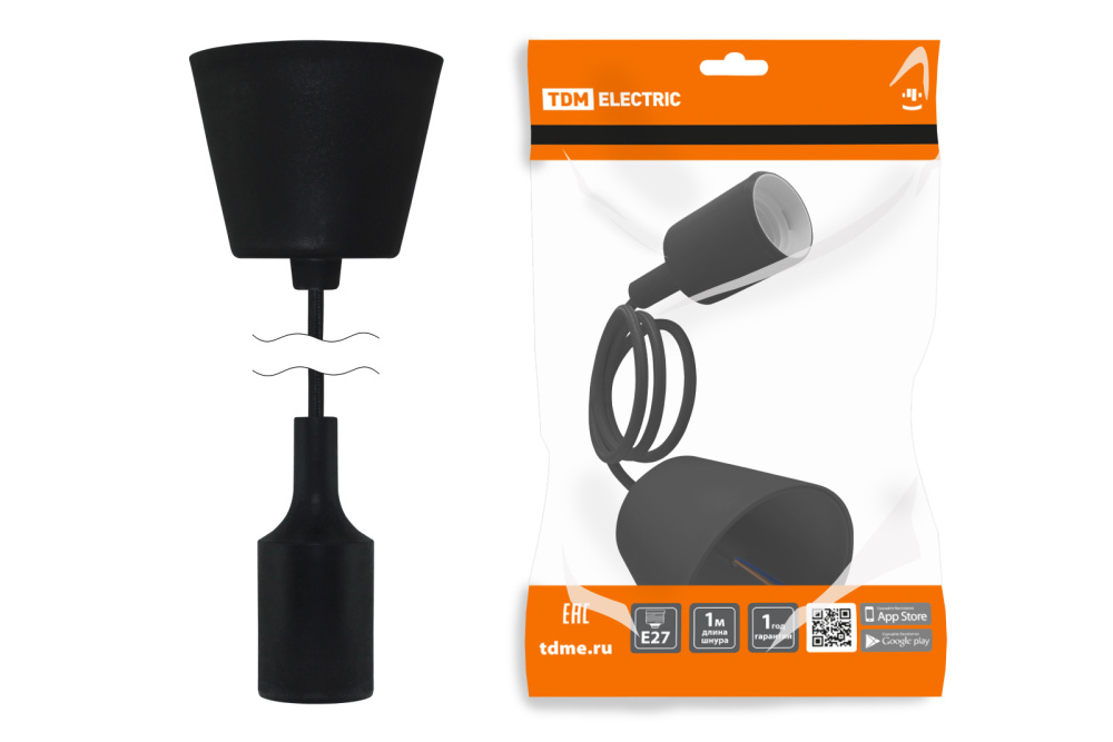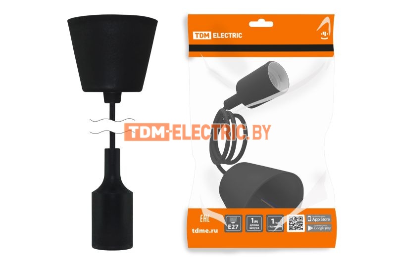 Патрон Е27 пластиковый с подвесом 1 м черный TDM /1