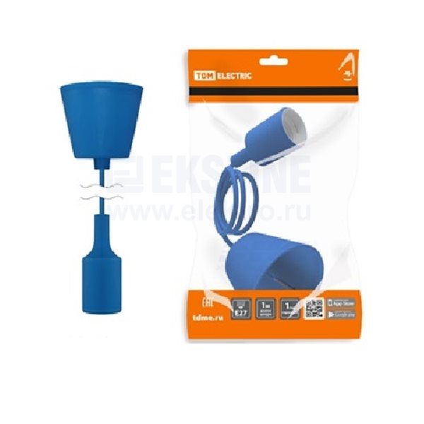 Патрон Е27 пластиковый с подвесом 1 м синий TDM /1