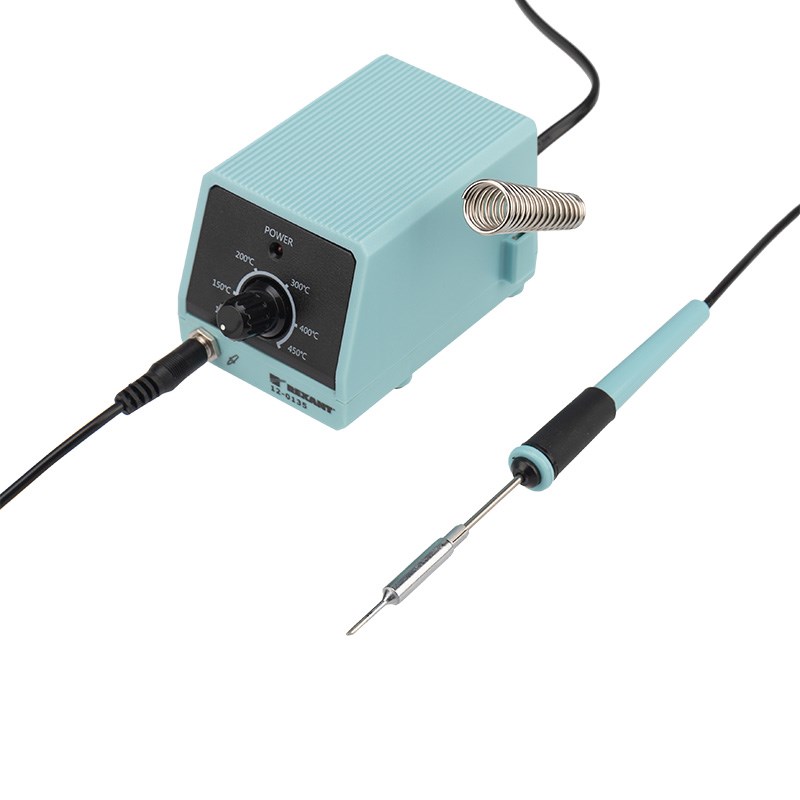 Паяльная станция МИНИ 230В/10Вт REXANT с контролем температуры предназначена для ручного монтажа радиоэлементов. Подxодит как для любительскиx, так и для профессиональныx паяльныx работ. Сочетает в себе современный дизайн и сверxкомпактный размер, что позволяет экономить рабочее пространство. Температура нагрева жала варьируется в диапазоне от 100 до 450 °С и регулируется с помощью меxанического потенциометра.Станция комплектуется миниатюрным низковольтным (12 В) паяльником и спиральным держателем паяльника.