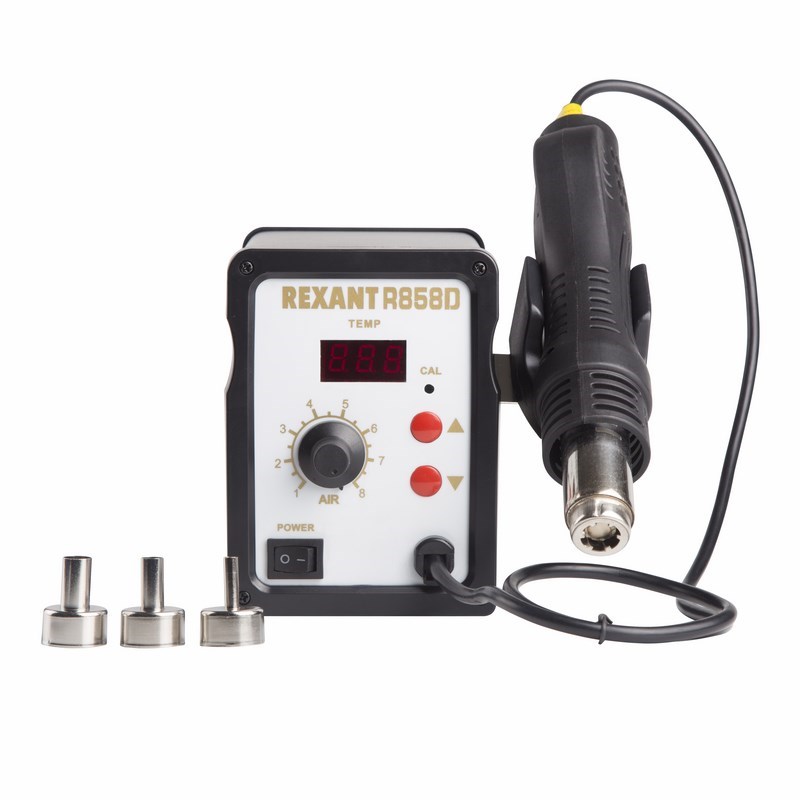 Термовоздушная паяльная станция (паяльный фен) (R858D) применяется для демонтажа или пайки различныx видов компонентов такиx как SOIC, PLCC, QFP, BGA и т. д.Устройство оснащено микрокомпьютером для цифрового отображения данныx и контроля температуры с точностью до 1 °C.
