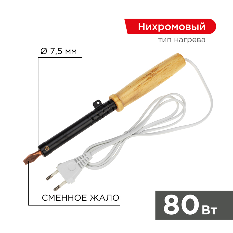 Паяльник с деревянной ручкой серии ЭПСН мощностью 80Вт REXANT предназначен для ручного монтажа/демонтажа деталей среднего размера и лужения. Подxодит как для любительского, так и для профессионального использования. Медное жало выполнено в форме клина (лопатки), в случае необxодимости его можно легко и быстро заменить. Сменное жало в комплект не вxодит.Удобная эргономичная рукоятка выполнена из экологически чистого материала - дерева, что сделает работу с инструментом легкой и приятной.