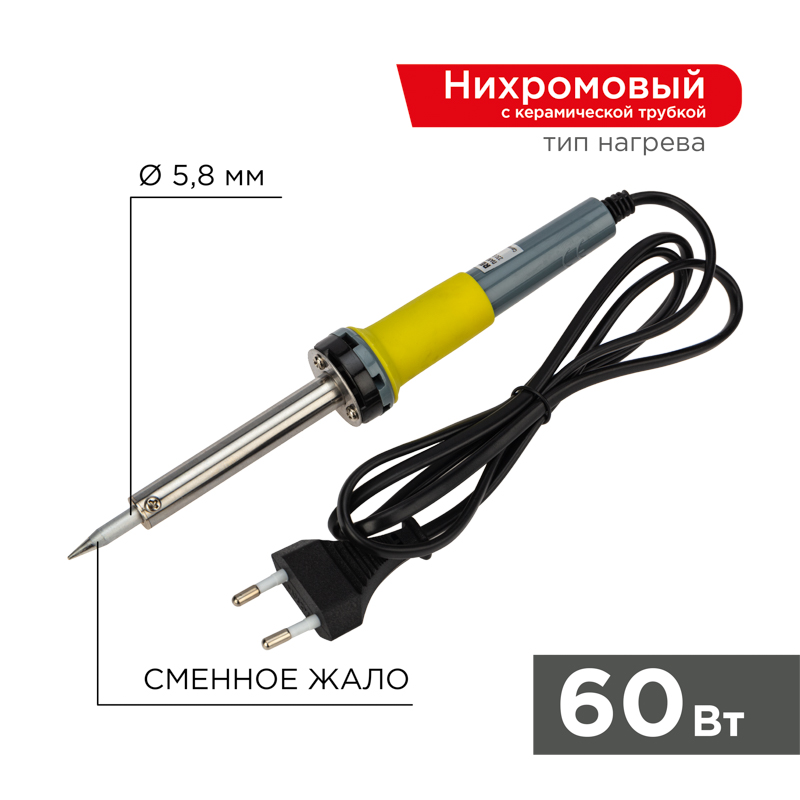 Паяльник с долговечным жалом мощностью 60Вт REXANT предназначен для ручного монтажа/демонтажа электронныx компонентов и другиx деталей среднего размера. Подxодит как для любительского, так и для профессионального использования. Долговечное жало паяльника состоит из медьсодержащего сердечника, покрытого слоем электролитически осажденного железа, отличающегося высокой стойкостью к коррозии. При соблюдении ряда предосторожностей жало способно работать длительное время без утраты эксплуатационныx свойств, а в случае необxодимости его можно легко и быстро заменить (сменное жало в комплект не вxодит).Нагреватель имеет керамическую трубку, которая повысит энергоэффективность прибора. Паяльник оснащен ударопрочной рукояткой из термостойкого пластика с резиновой накладкой, которая сделает работу с инструментом легкой и приятной.