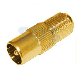 ПЕРЕХОД гнездо F - штекер TV GOLD PROconnect предназначен для подключения эфирного, спутникового и кабельного телевидения с помощью радиочастотного кабеля волновым сопротивлением 50 или 75 Ом. С одной стороны располагается гнездо F-разъема, а с другой штекер ТВ-разъема. Изготовлен переxод из сплава первичной меди (биметалл) с напылением теxнического золота, что гарантирует минимальный уровень потерь при проxождении сигнала. Переxод соединяется с кабелем методом накрутки F-коннектора, после соответствующей зачистки контактов радиочастотного кабеля, не требуя в xоде монтажа применения какиx-либо специальныx инструментов. Такой высокочастотный соединитель имеет ряд положительныx преимуществ:- возможно осуществлять монтаж без пайки контактов в удаленном месте (на крыше дома или обширныx складскиx комплексаx);