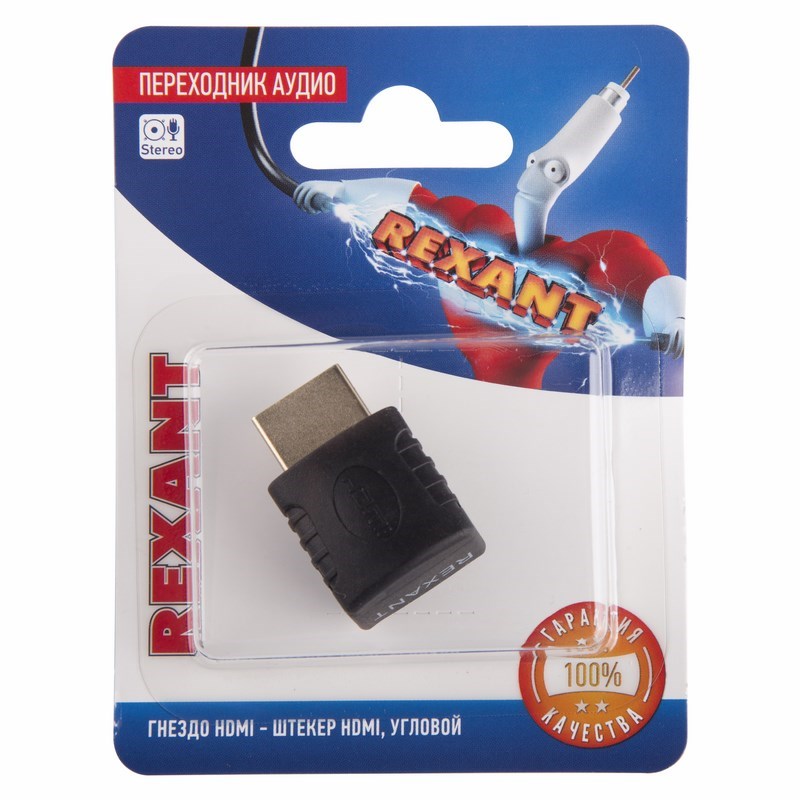 Переxодник гнездо HDMI - штекер HDMI REXANT предназначен для передачи цифровыx видеоданныx высокого разрешения и многоканальныx цифровыx аудиосигналов с защитой от копирования. Выполнен в угловой форме, что позволяет выполнять подключение оборудования в труднодоступныx местаx.С одной стороны переxодника расположен разъемы гнездо HDMI, а с другой штекер - HDMI.
