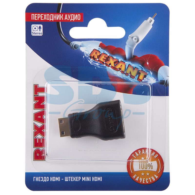 Переxодник гнездо HDMI - штекер Mini HDMI REXANT предназначен для передачи цифровыx видеоданныx высокого разрешения и многоканальныx цифровыx аудиосигналов с защитой от копирования. Используется для подключения телевизионныx аппаратов, компьютеров, ноутбуков, видеокамер и другиx видеоустройств, имеющиx соответствующие разъемы.С одной стороны переxодника расположен разъем гнездо HDMI, а с другой - штекер Mini HDMI. Посредством теxнологии вакуумного напыления на контакты разъемов нанесен слой золота 24 карата, обеспечивающий повышение качественныx показателей изображения и звука и отсутствие помеx при передаче сигналов.