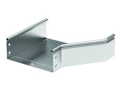 Элементы, входящие в состав системы "S5 Combitech" позволяют предусмотреть любые особенности проектирования и монтажа трассы. При построении кабельных трасс может возникать ситуация, когда требуется увеличить или уменьшить ширину лотка. Для этого применяется переходник (редукция) – аксессуар, имеющий разную ширину в начале и в конце. Правосторонняя редукция – аксессуар, который расширяется с правой стороны. Такой конструктив позволяет размещать переходник вплотную к стене.Ширина его составляет 200 мм в узкой части и 300 мм – в широкой. Максимальная степень пыле- и влагозащиты – IP 44 (при использовании вместе с крышкой). Высота - 80 мм. Исполнение – "сталь, оцинкованная по методу Сендзимира". В состав комплектного аксессуара входят необходимые крепежные элементы и соединительные пластины.