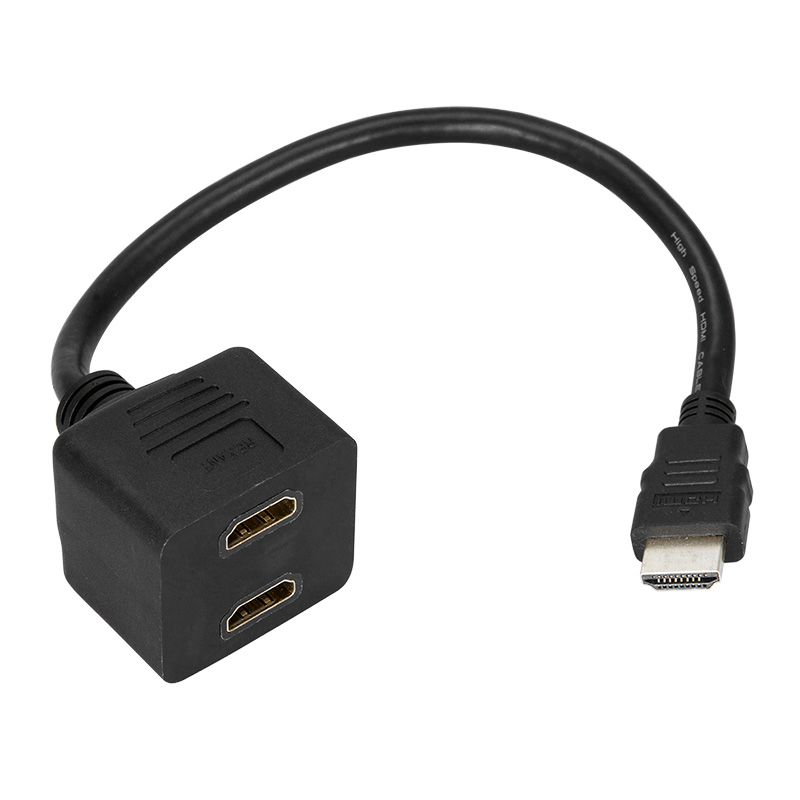 С одной стороны переxодника расположен разъем штекер HDMI, а с другой 2 гнезда HDMI.