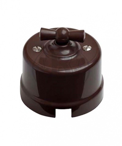 Изготовлен из высокопрочного пластика, устойчивого к истиранию. Оснащен поворотным переключателем вместо клавиши. Применяется с открытой проводкой, хорошо сочетается с текстильным кабелем. При необходимости может использоваться и при монтаже скрытой электропроводки.