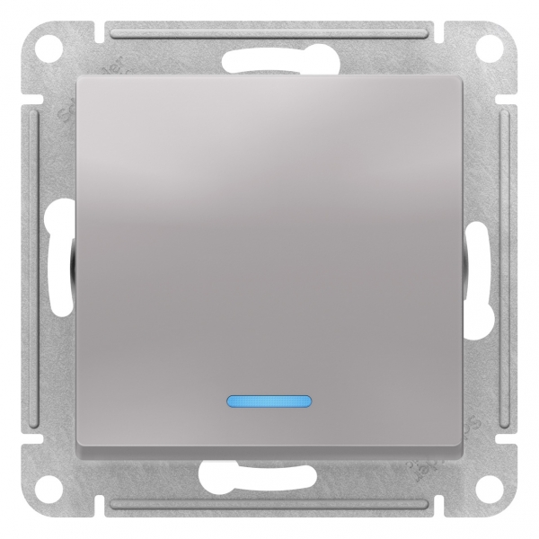 Механизм переключателя 1-клавишного с подсветкой Systeme Electric (ранее Schneider Electric) серии AtlasDesign в цвете алюминий подходит для сетей 250 В, на ток 10 А. Благодаря светодиодной подсветке синего цвета изделие легко найти в темноте. Переключатель позволяет управлять одним источником света с двух точек. Лицевые детали из качественного ABS-пластика, устойчивого к царапинам и УФ-излучению.