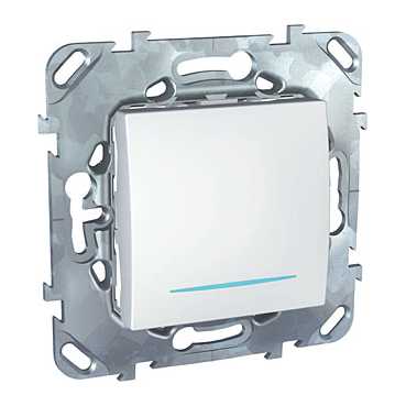 Переключатель одноклавишный Schneider Electric UNICA (белый) с подсветкой предназначен для сетей до 250 В на ток до 10 А.- 1 переключающий контакт.