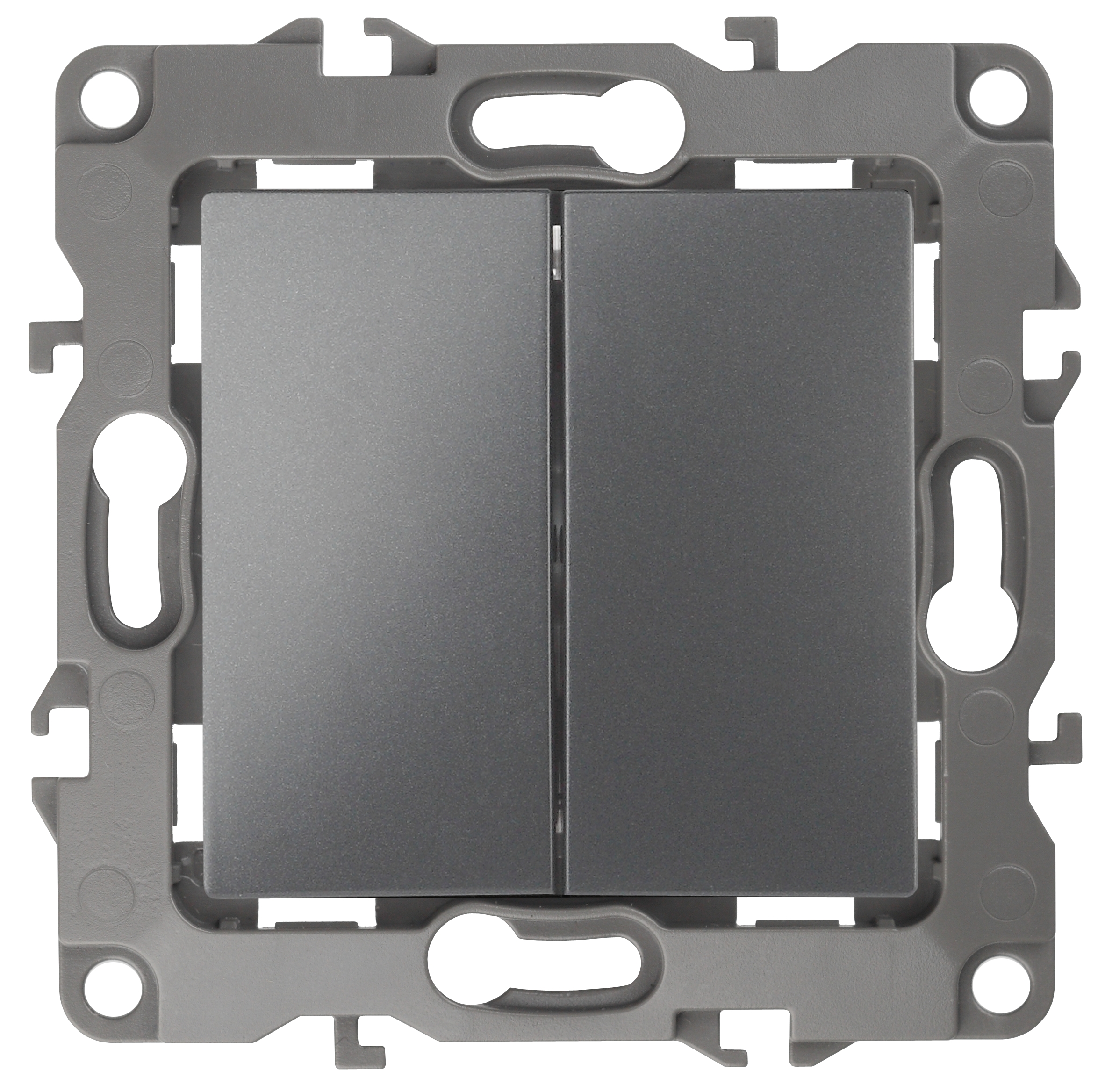 Выключатель 2-клавишный проходной серии Эра 12 скрытой установки механизм цвет графит 12-1106-12. Номинальные характеристики 10А 250В . Сделан из поликарбоната, оснащёно автоматическими клеммами для быстрй и надёжной фиксации жил кабеля в механиме. Парные клеммы обеспечивают соединение шлейфом. Монтаж в подрозетник производится и на лапки, и на винты. Рамки приобретаются отдельно. Рамки Эра 12: 1 пост 12-5001-хх, 2 поста 12-5002-хх, 3 поста 12-5003-хх, 4 поста 12-5004-хх, 5 постов 12-5005-хх. Рамки Эра 12 Сатин: 1 пост 12-5101-хх, 2 поста 12-5102-хх, 3 поста 12-5103-хх, 4 поста 12-5104-хх, 5 постов - 12-5105-хх (хх - код цвета: 01-белый, 02-слоновая кость, 03-алюминий, 04-шампань, 05-антрацит, 06-чёрный, 07-ольха(белёный дуб-сатин), 08-вишня, 09-дуб, 10-венге, 11-сосна, 21-жёлтый, 22-оранжевый, 23-красный, 24-охра, 25-бордо, 26-лайм, 27-зелёный, 28-голубой, 29-синий).