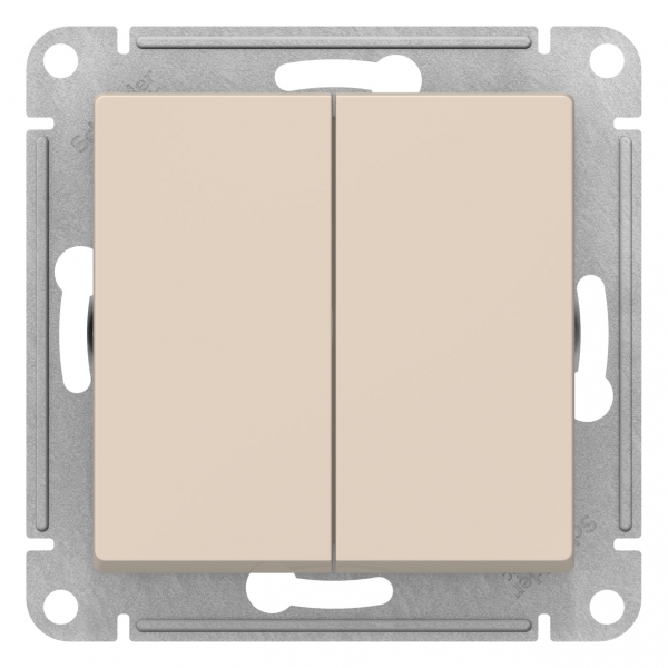 Механизм Systeme Electric (ранее Schneider Electric) серии AtlasDesign в цвете бежевый переключателя 2-клавишного подходит для сетей 250 В, на ток 10 А. Переключатель позволяет управлять одним источником света с двух точек. Лицевые детали из качественного ABS-пластика, устойчивого к царапинам и УФ-излучению. Усиленные прямые монтажные лапки для лучшей фиксации механизма в монтажной коробке.
