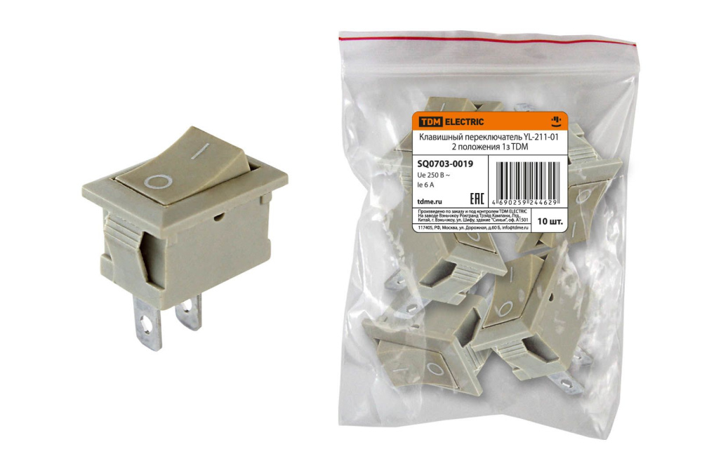 Переключатель клавишный YL-211-01 серый 2 положения 1з TDM /1