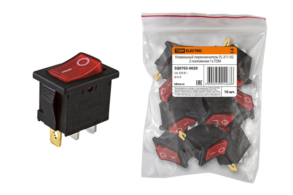 Переключатель клавишный YL-211-02 черный корпус красная клавиша 2 положения 1з TDM /1