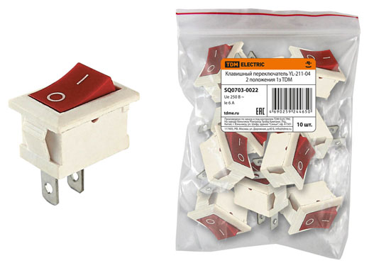 Переключатель клавишный YL-211-04 белый корпус красная клавиша 2 положения 1з TDM /1