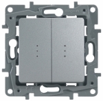 Одноклавишный перекрестный переключатель Etika для управления одной линией освещения из трех и более мест. Применяется в коридорах, на лестницах и в проходных зонах, где важны надежность классической коммутации и лаконичный внешний вид серии.