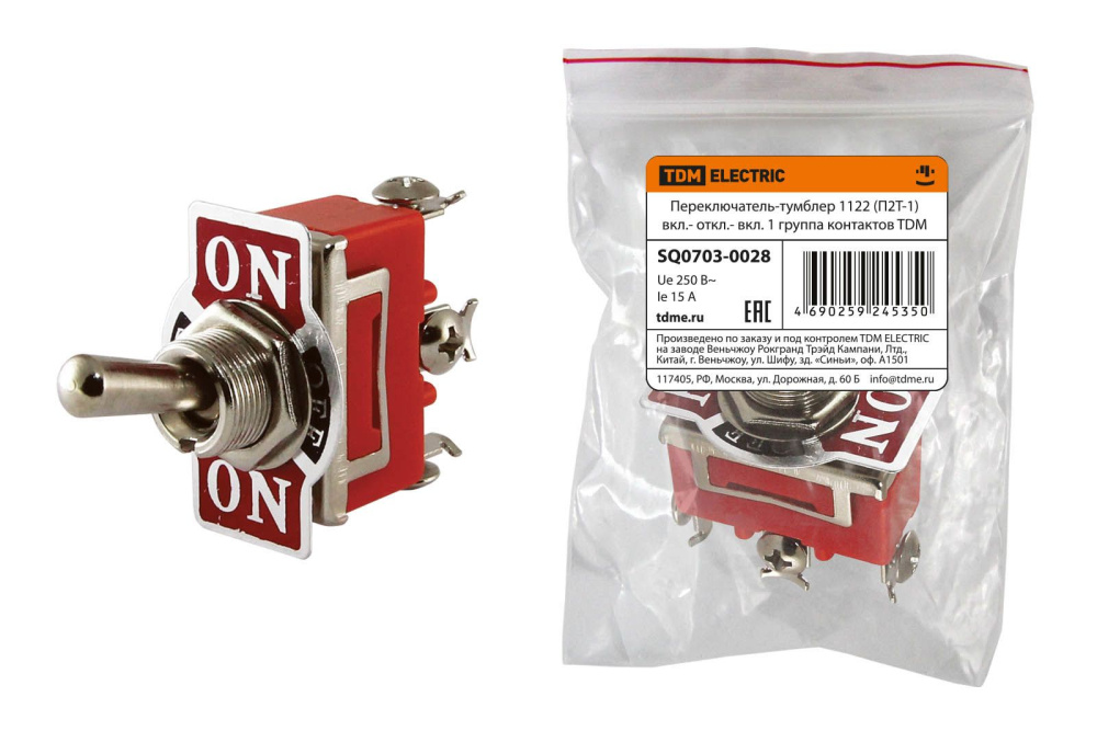 Переключатель-тумблер 1122 (П2Т-1) включено-отключено-включено 1 группа контактов TDM /10/500