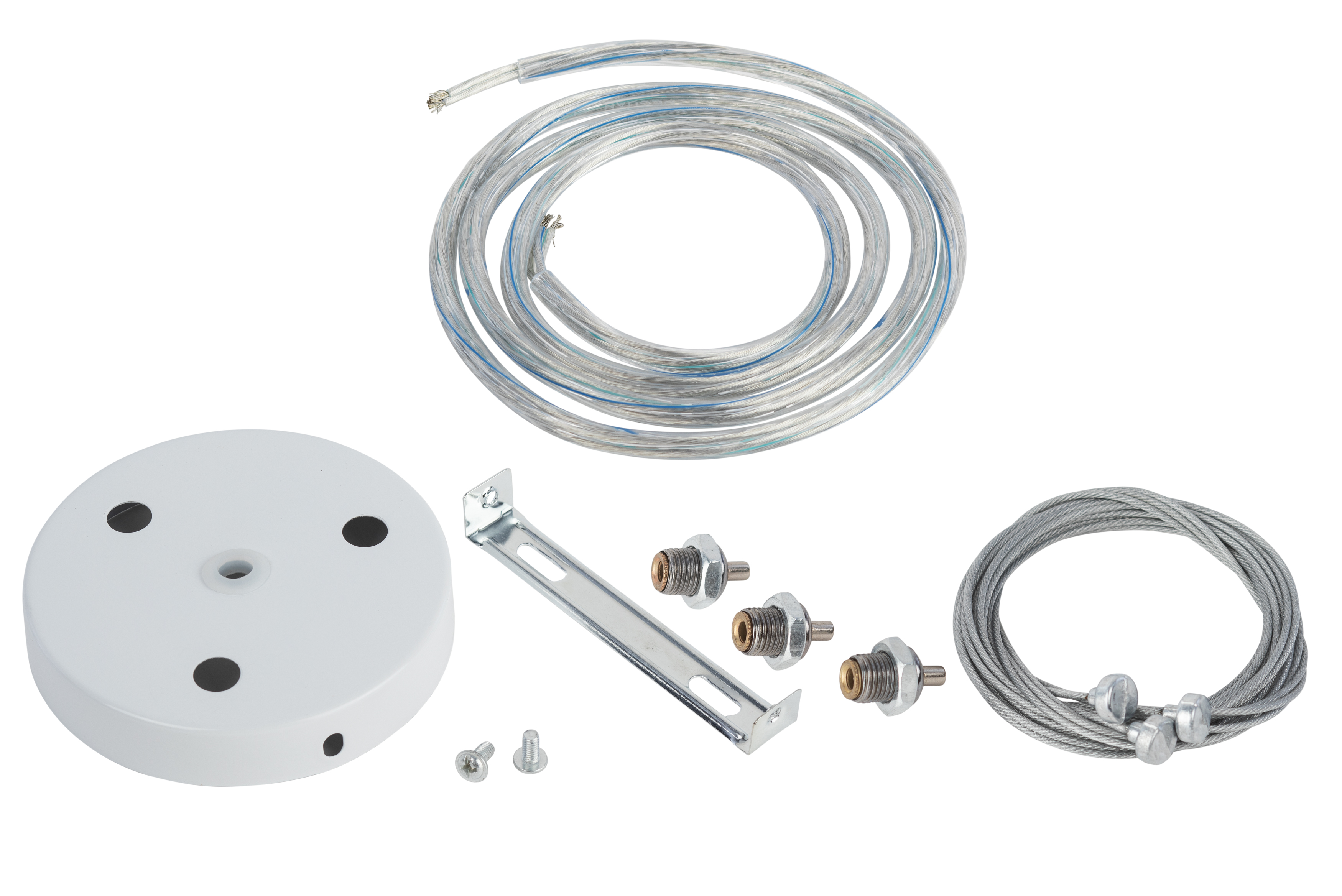 Понравившийся накладной светильник займет достойное место в комнате, если его закрепить тросовым подвесом SPB 6 компании ЭРА. Подвес позволяет произвести монтаж различных моделей настенно-потолочных светильников, стать дизайнером светового освещения своей квартиры или других помещений. В комплект входит основание с тремя цангами, 3 троса с карабинами для фиксации светильника и провод для подключения питания длиной 1,2 метра.