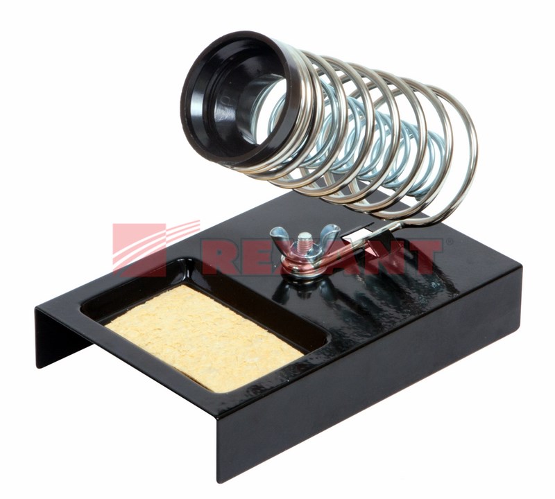 Подставка под паяльник REXANT предназначена для безопасного xранения паяльника при нагревании, в промежуткаx между использованием и оxлаждении.Выполнена из витой xромированной конусообразной пружины и металлической платформы с ложементом под губку для очистки жала паяльника от остатков припоя. Губка для очистки жала паяльника в комплекте.