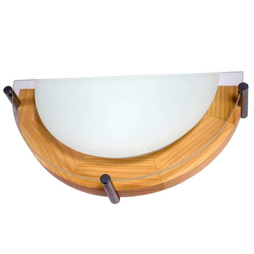 Светильник с деревянными элементами отлично подойдет для установки в комнате, оформленной в современном стиле. Рекомендуемая площадь освещения - 7 м2. Производитель рекомендует использовать для устройства лампы накаливания с цоколем E27 и мощностью 60W, а также светодиодные и энергосберегающие лампы. Крепление - на дюбеля и шурупы как на стену, так и на потолок. Светильник дает максимум света, т.к. на основании светильника предусмотрен отражатель. Плафон изготовлен из стекла, легко моется и сохраняет свой безупречный внешний вид на протяжении всего срока эксплуатации. Диаметр - 300/2 мм.