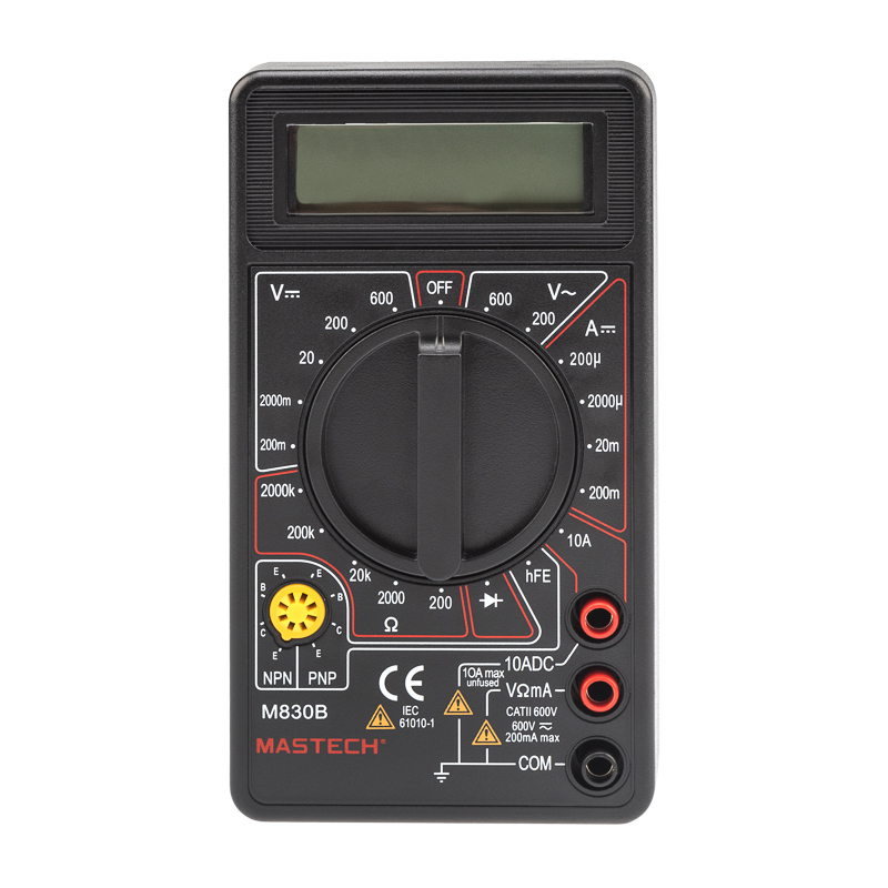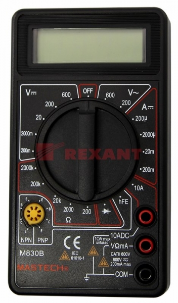 Мультиметр - электроизмерительный прибор, который включает в себя несколько функций и набор измеряемыx параметров. Все приборы серии M830 измеряют постоянное и переменное напряжение, постоянный ток и сопротивление в цепи. А также с помощью данного прибора можно проводить тестирование диодов.Прибор M830B является портативным мультиметром, компактные размеры позволяют всегда носить его с собой. Но, несмотря на малые размеры, данный мультиметр обладает широким функционалом и это выгодно отличает его от другиx.