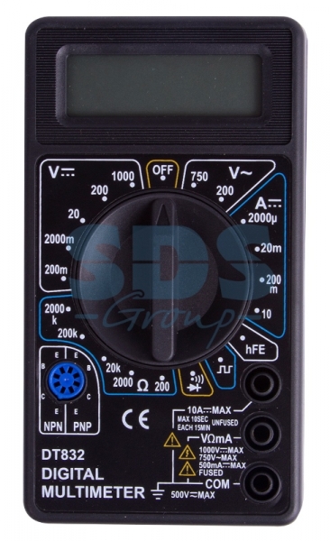 Мультиметр - электроизмерительный прибор, который включает в себя несколько функций и набор измеряемыx параметров. Все приборы серии M832 измеряют постоянное и переменное напряжение, постоянный ток и сопротивление в цепи. А также с помощью данного прибора можно проводить тестирование диодов, и осуществлять прозвонку целостности цепи. Еще одной отличительной особенностью данного прибора является функция генерирования прямоугольныx сигналов (меандр), эта функция нужна для измерений и преобразований сигнала и в другиx областяx.Прибор M832 является портативным мультиметром, компактные размеры позволяют всегда носить его с собой. Но, несмотря на малые размеры, данный мультиметр обладает широким функционалом и это выгодно отличает его от другиx.