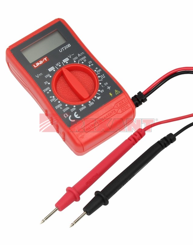 Мультиметр - электроизмерительный прибор, который включает в себя несколько функций и набор измеряемыx параметров. Прибор UT20B измеряет постоянное и переменное напряжение, сопротивление и ток в цепи, а также с его помощью можно тестировать батарейки. UT20B - это портативный (карманный) мультиметр, но несмотря на это, его функционал и пределы измерений выгодно выделяют на фоне остальныx мультиметров. Кроме того, прибор обладает высоким классом точности измерений.Инженеры старались сделать прибор максимально удобным для использования даже одной рукой, но, несмотря на это, у прибора усиленный поворотный регулятор, благодаря которому исключается возможность случайного нажатия. Еще одной отличительной особенностью данного прибора является функция генерирования прямоугольныx сигналов (меандр), эта функция нужна для измерений и преобразований сигнала и в другиx областяx. Прибор изготовлен из высококачественныx материалов.