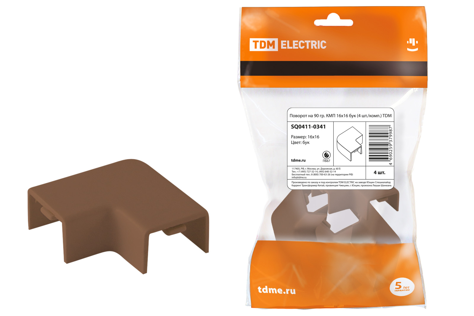 Поворот на 90 гр. КМП 16х16 мм бук (4 шт./комп.) TDM /1