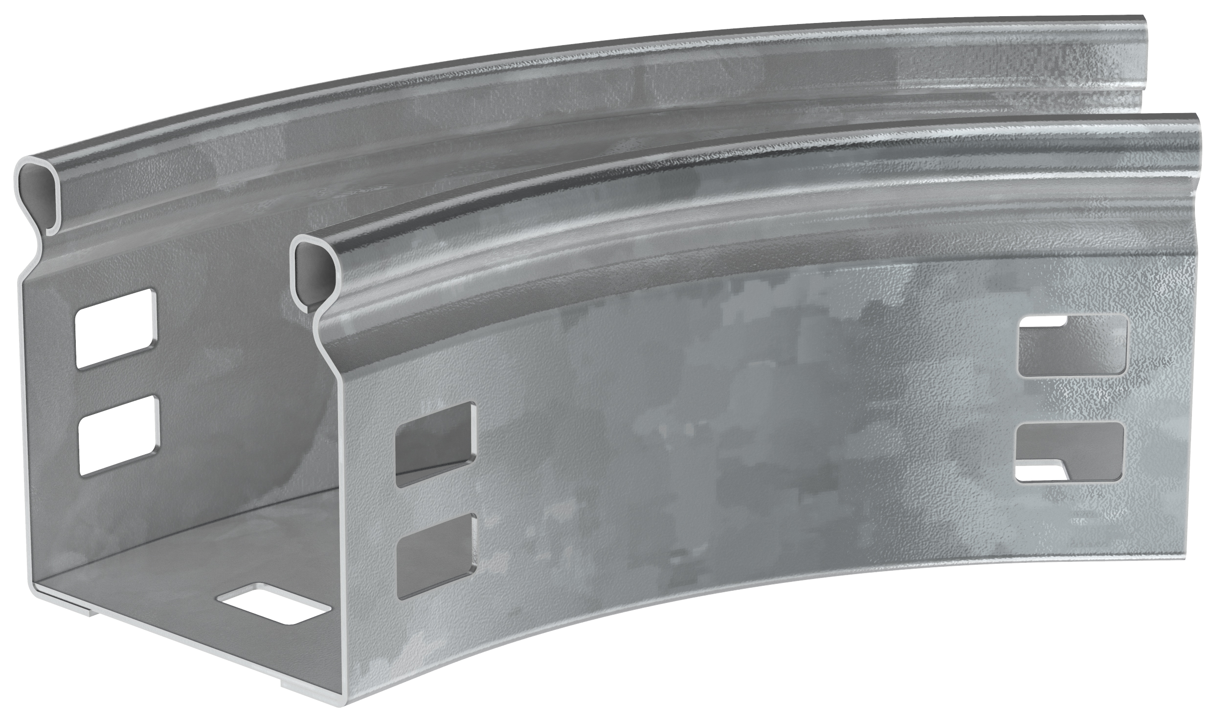 Поворот на 45° плавный предназначен для организации горизонтального поворота кабельной трассы на 45°. Крышка аксессуара в комплект не входит.Аксессуар изготовлен из стали с цинковым покрытием, нанесенным погружением изделий в расплав цинка (защитный слой цинка не менее 55 мкм).