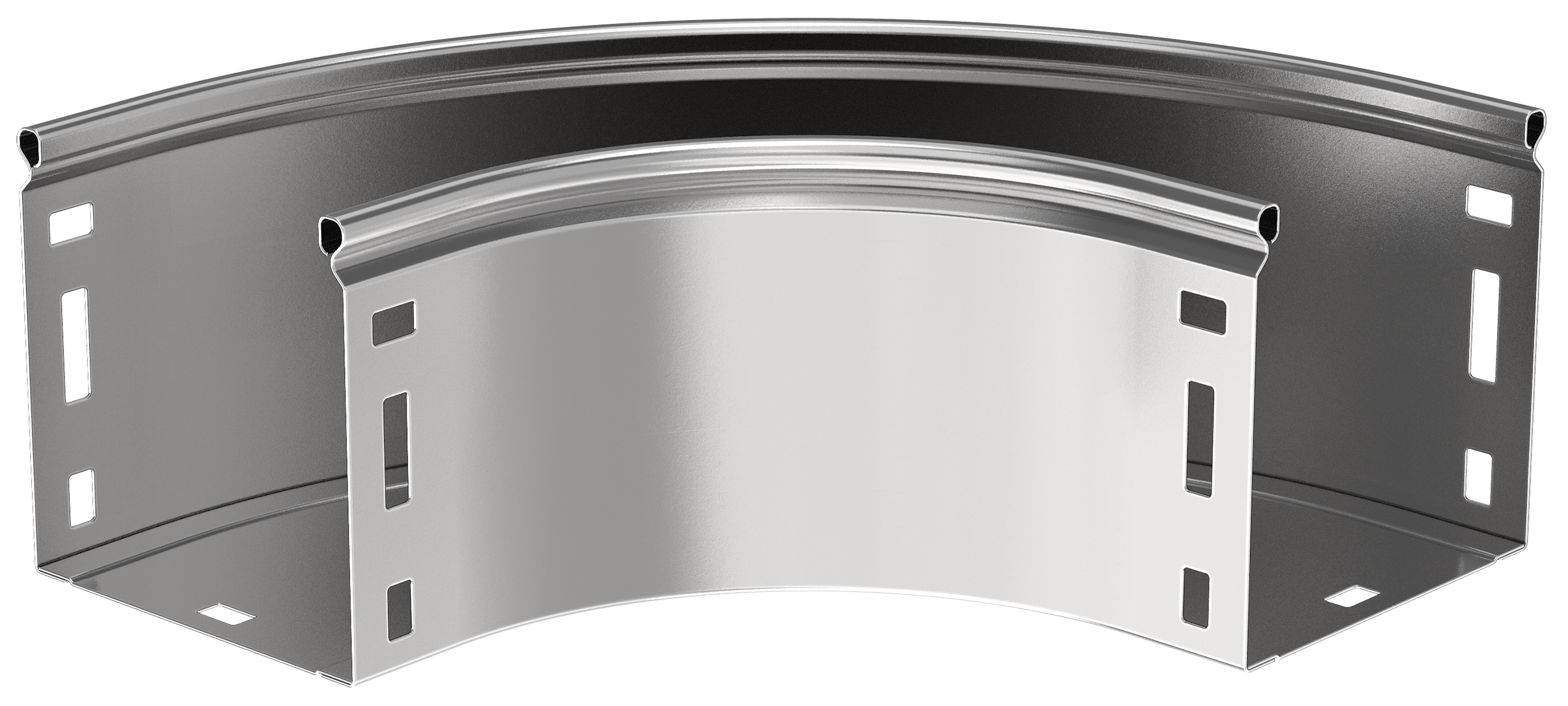 Поворот на 90° плавный предназначен для организации горизонтального поворота кабельной трассы на 90°. Крышка аксессуара в комплект не входит.