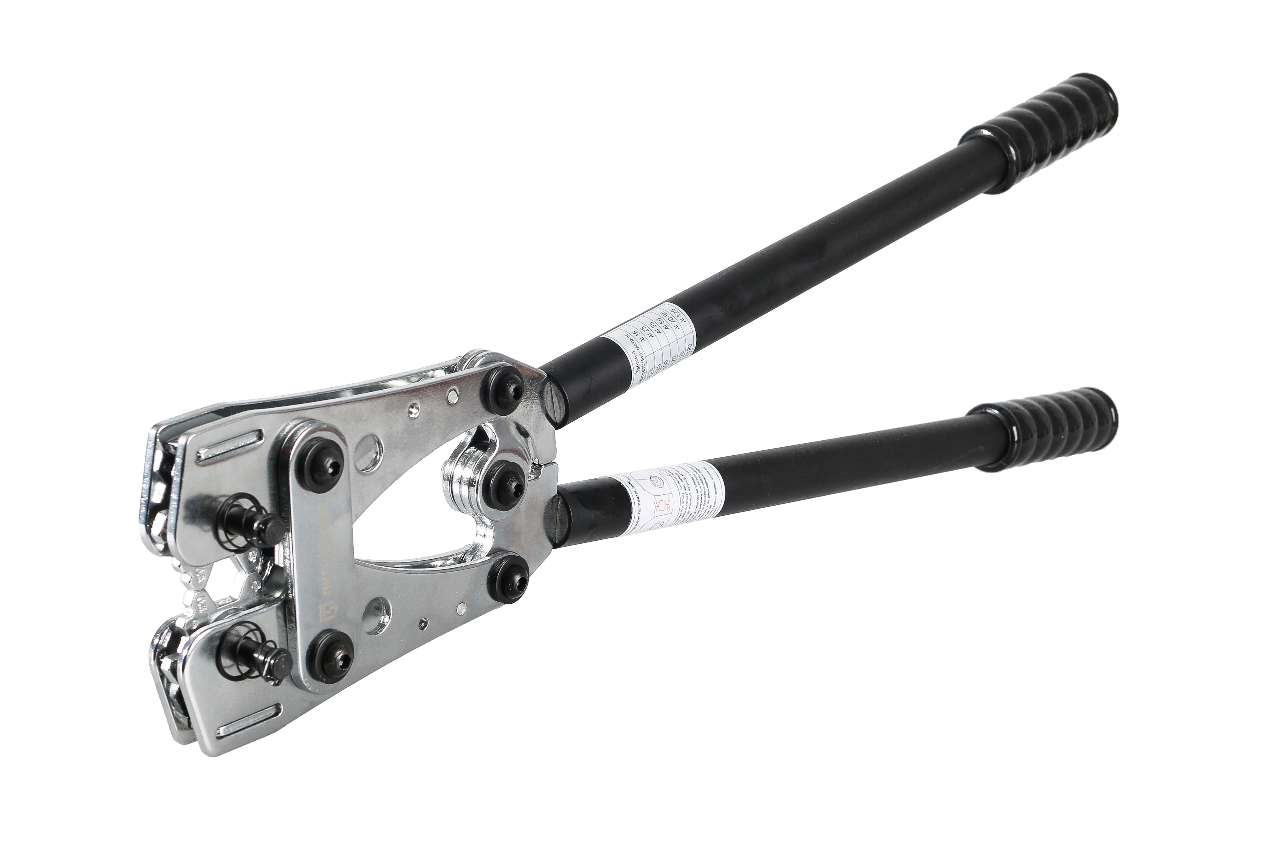 Диапазон сечений:;медные наконечники 10120 мм;алюминиевые наконечники 16120 мм;Встроенные матрицы револьверного типа;Ширина опрессовочного профиля: 5 мм;Гексагональный обжим;Быстрая перенастройка на нужный размер;Подпружиненные штифтовые фиксаторы матриц;Корпус из 5-миллиметровой стали;Обработка поверхности: хромирование;Удлиненные рукоятки с удобными резиновыми ручками;Вес: 3.60 кг;Длина: 640 мм;
