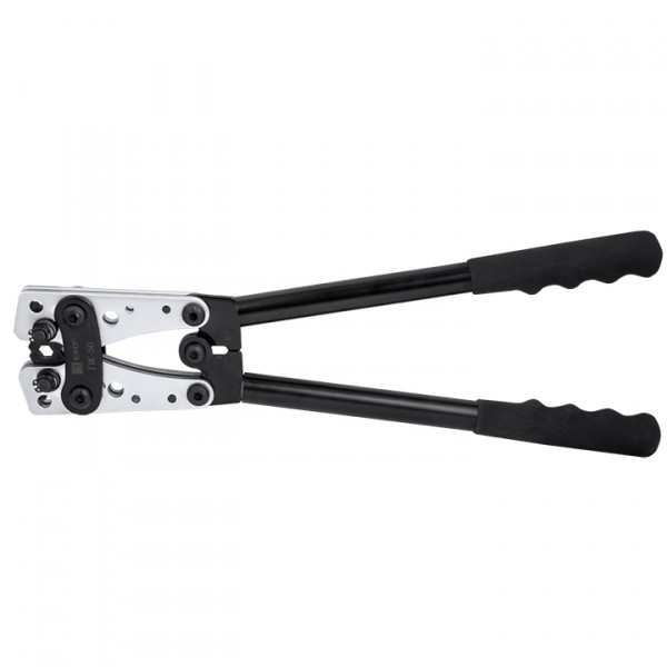Пресс-клещи механические pk-50-exp предназначены для ручной опрессовки алюминиевых и медных кабельных наконечников сечением 6-50 мм2 с помощью встроенных револьверных матриц.