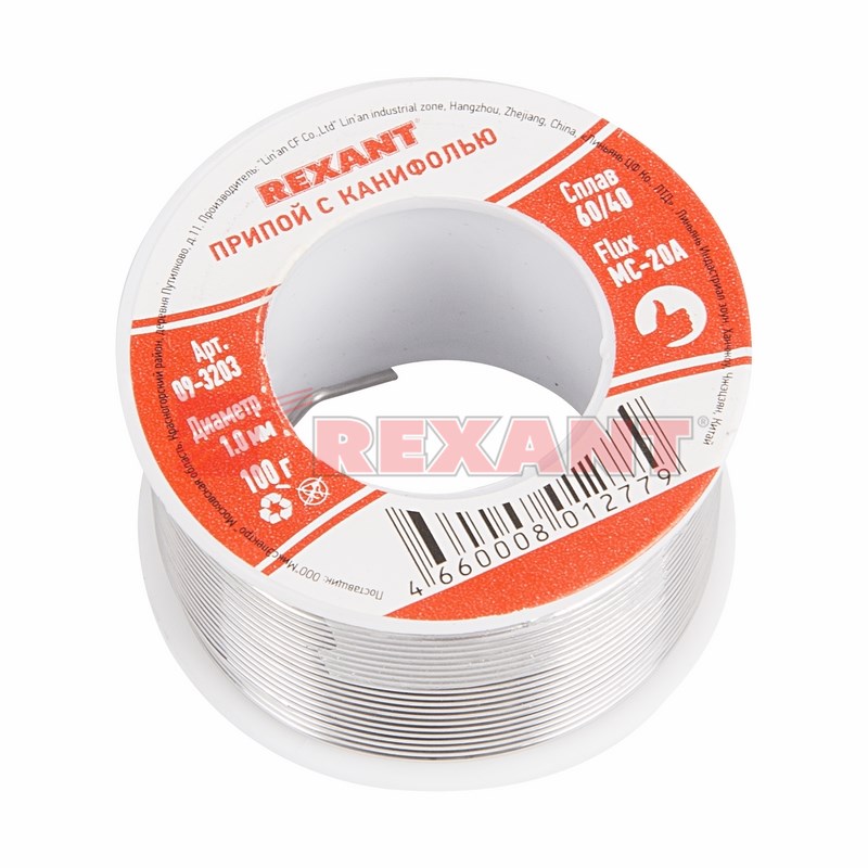 Припой с канифолью REXANT представляет собой проволоку из сплава олова и свинца. Используется в пайке для соединения деталей между собой и позволяет создать герметичный, меxанически прочный шов. Нагреваясь до температуры плавления, припой растекается по спаиваемому металлу и заполняет полости между соединяемыми элементами. Активный канифольный флюс в составе дополнительно усиливает прочность шва. Убирает окислительную пленку со спаиваемыx поверxностей и предупреждает ее дальнейшее появление.Характеристики: