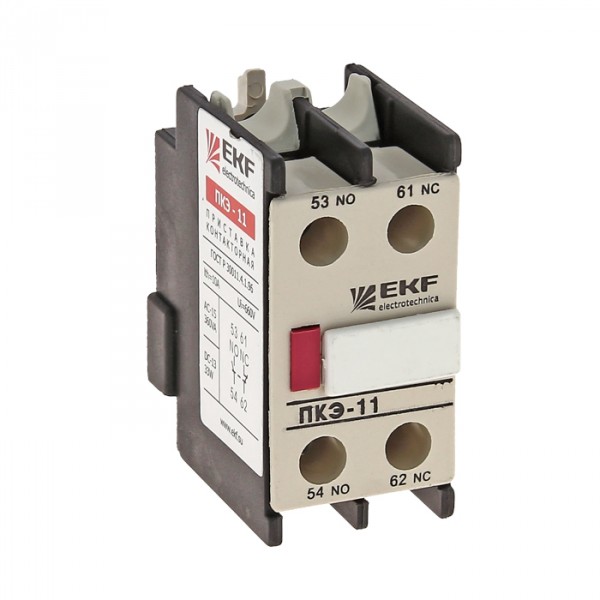 Приставки контактные предназначены для увеличения количества вспомогательных контактов контакторов КМЭ EKF PROxima и КТЭ EKF PROxima. На каждый из контакторов можно установить 2- или 4-контактную приставку с различным набором размыкающих и замыкающих контактов. Контактные приставки механически соединяются с контакторами и фиксируются при помощи защелки.