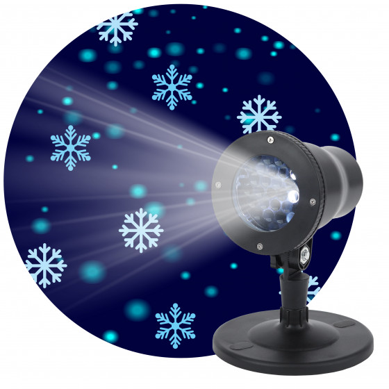 Светодиодный проектор ЭРА "Снежинки" (арт. Б0041645) создает на стенах, потолке или фасаде здания яркий световой рисунок, состоящий из узорчатых белых и голубых снежинок. Он с успехом применяется как внутри, так и снаружи помещений, так как защищён от влаги и были, устойчив к низким и высоким температурам, корпус изготовлен из ударопрочного пластика. Это простой и удобный прибор для праздничной атмосферы, радостного новогоднего настроения. В комплекте вы найдёте пульт дистанционного управления, с помощью которого можно "оживить" статичные снежинки - они будут кружиться с нужной вам скоростью. В наборе 2 подставки: заострённая ножка для установки в снег или грунт + широкое основание для горизонтальной поверхности. Есть пазы для подвешивания на стену. Работает прибор от стандартной сети 220 В. Шнур длиной 5 метров позволяет использовать проектор на значительном расстоянии от электросети. Специальный соединительный разъём даёт возможность дополнительно наращивать провод при помощи удлинителей. Создавайте праздничное настроение вместе с ЭРА.