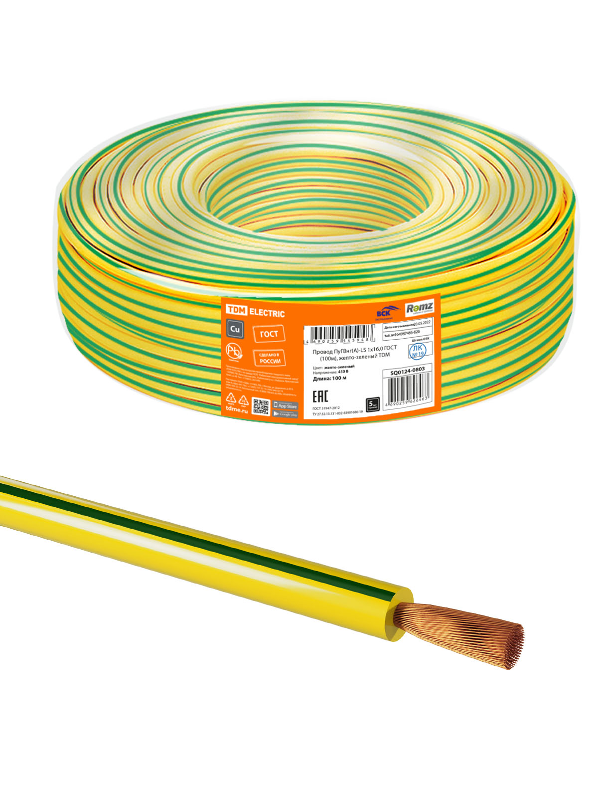 Провод ПуГВнг-LS 16,0 жел/зел (TDM) 1*100м