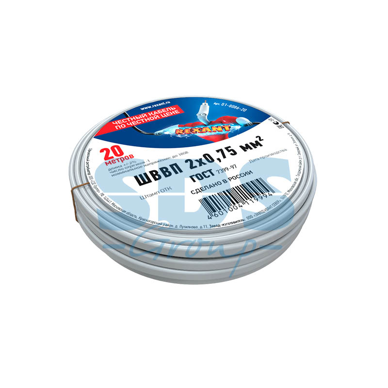 Провод REXANT ШВВП 2x0,75 ГОСТ 1* 20 м.