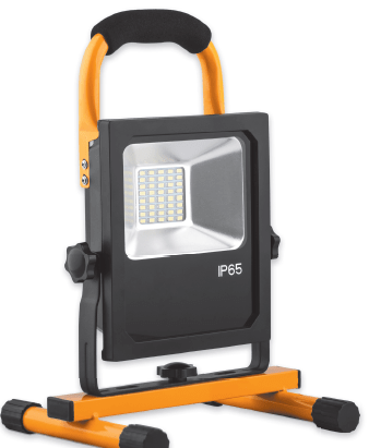 Прожектор светодиодный переносной с ручкой, с зарядным устройством (ДО) FERON LL-912, 20W, 6400К (холодный белый), 230V/50Гц, 1600Lm, IP65, угол рассеивания 120°,*SMD5730, раб.t -40°C - +40°C, цвет черный-желтый, корпус алюминий литой под давлением + стекло, 215*185*320 мм